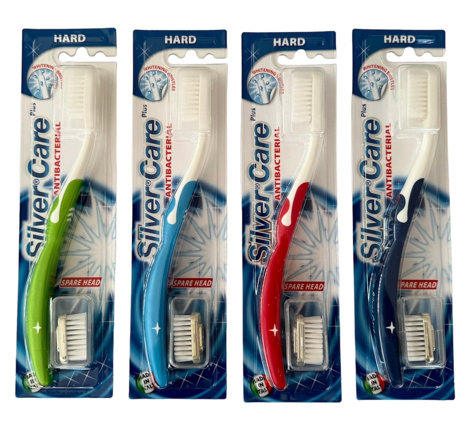 Zahnbürste "Silvercare PLUS" mit antibakteriellen, abnehmbaren Borsten und Ersatzkopf, hart.